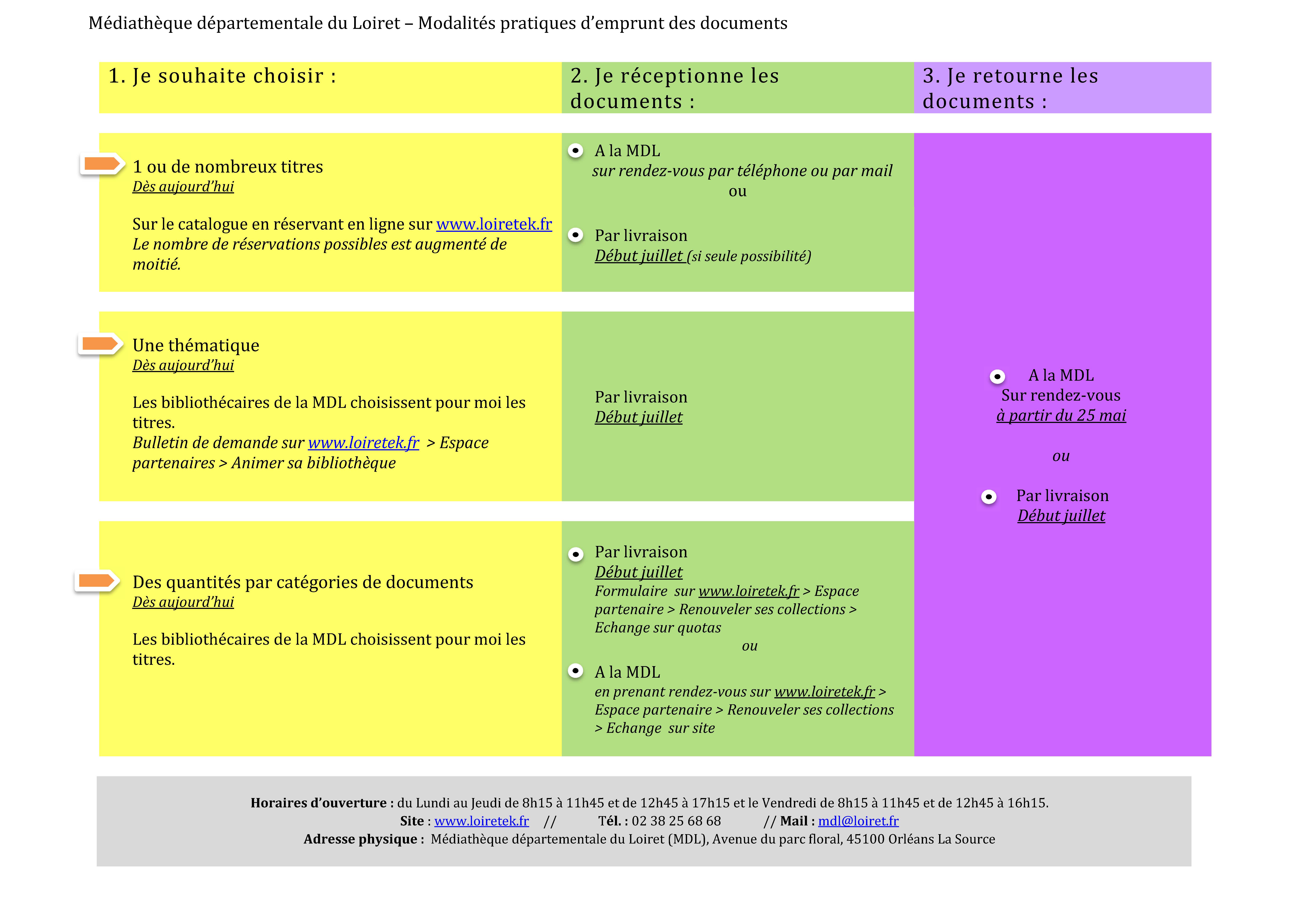 (mise à jour le 17/06/20). A cet effet, considérez le numéro du standard de notre médiathèque départementale (02.38.25.68.68) comme une hotline à votre disposition. Toute l’équipe est mobilisée pour vous accompagner au mieux dans cette période délicate.