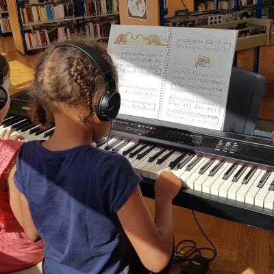 Régulièrement, des usagers de tout âge viennent en jouer. Des élèves qui débutent dans l’apprentissage de cet instrument de musique viennent aussi s’y entraîner.