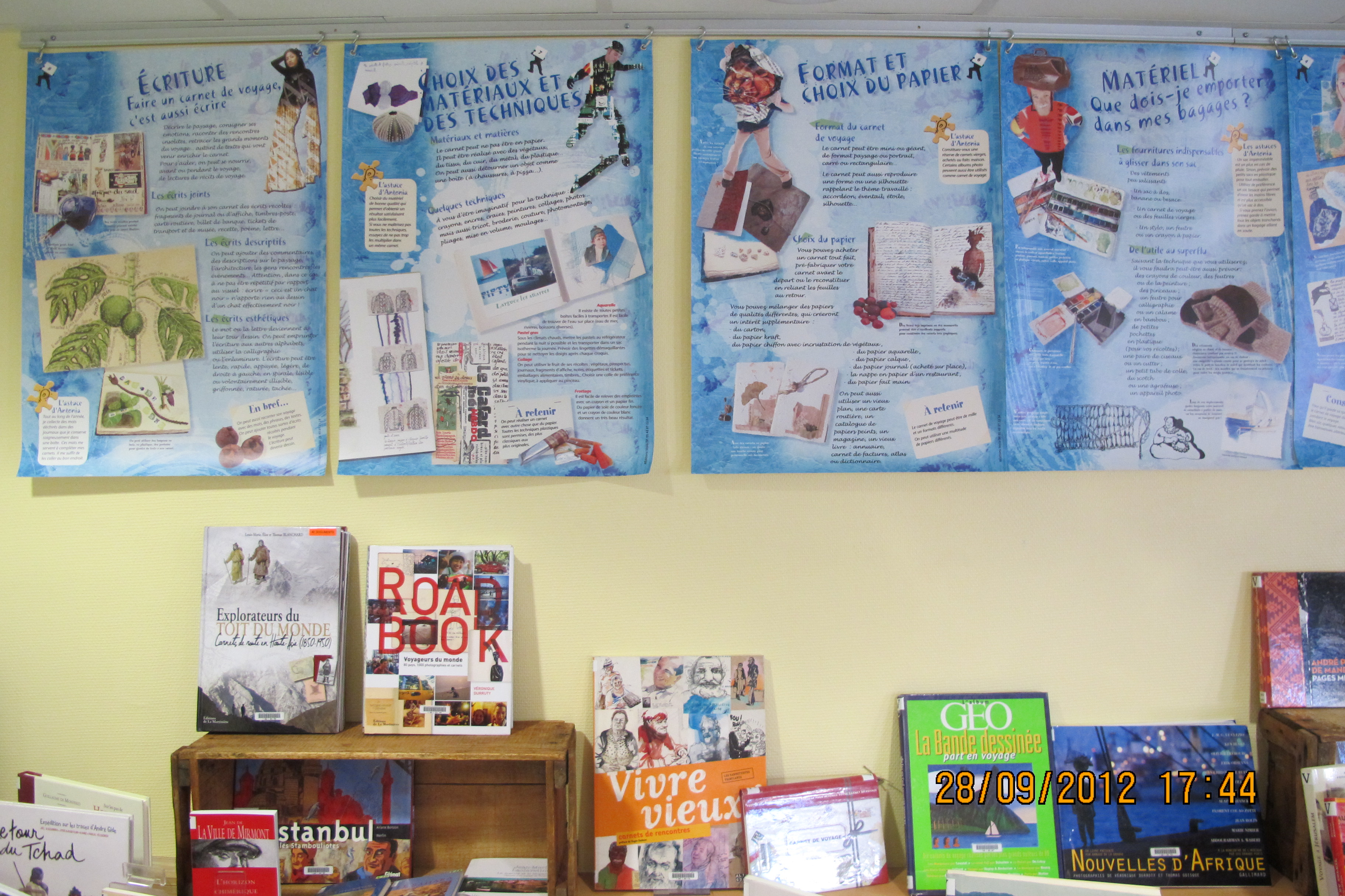 A l’ouverture de la médiathèque de Mareau-aux-Prés, un système de rails fixés en haut des murs a été installé pour y accrocher tous types de supports d’expositions.